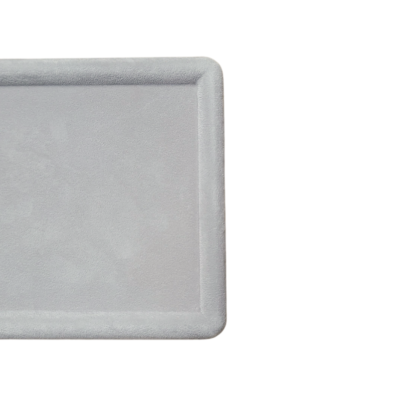 This jewellery display tray is perfect for showing jewellery in stores. With a wooden base covered in soft velvet, it protects and showcases jewellery beautifully. Available in beige, grey, and white, and in four sizes, this tray is ideal for shops, pop-up store displays, and exhibitions.