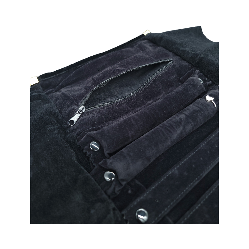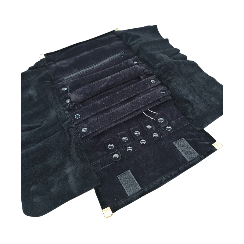 Crafted from soft velvet, this pouch combines luxury with practicality. The removable metal snaps ensure convenient sorting, while the durable velvet protects your jewellery from scratches. Available in three sizes, this pouch suits a variety of storage needs. The added zippered pocket is perfect for keeping small items organized during travel.