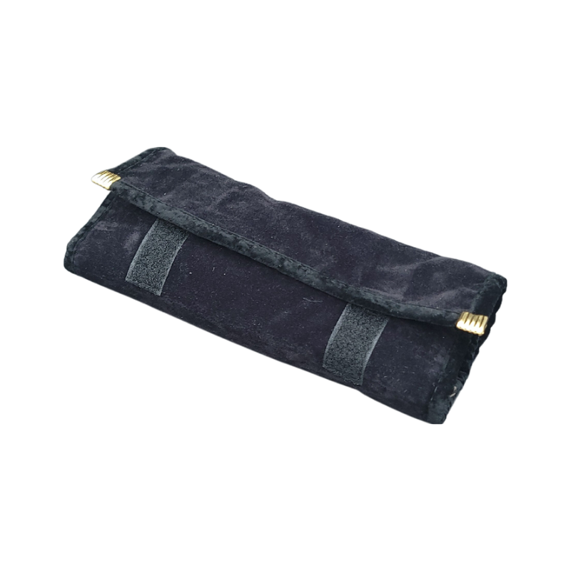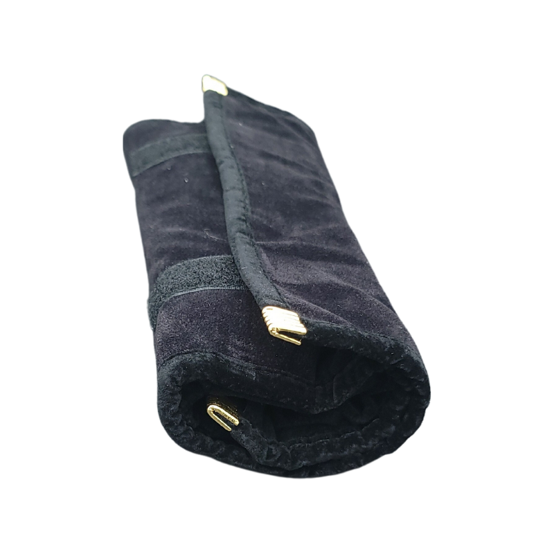 This velvet travel pouch is designed for both elegance and functionality. It provides dedicated compartments for necklaces, earrings, bracelets, and rings. Featuring removable metal snaps, it offers hassle-free organization and secure storage for your jewellery. Designed specifically for personal use, this pouch is ideal for travel and is available in three sizes and colours. An added zippered pocket allows you to store bracelets, hair accessories, or other small items with ease.